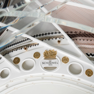 Originally created in 1951 by Arno Schimmel the Glass grands design was updated, refined and relaunched in the 1980's by Mr Nikolaus Schimmel. The glass grand was Initially conceived as a show-stopping piano for stage use where the lid could be raised without obscuring musicians and objects that might be behind the piano. The Glass grand has also been developed since its re-introduction and has gone through 205, 208 and now 213 model iterations. The dense plexiglass material does influence the sound of the instrument and glass grands have a particularly strong bass.